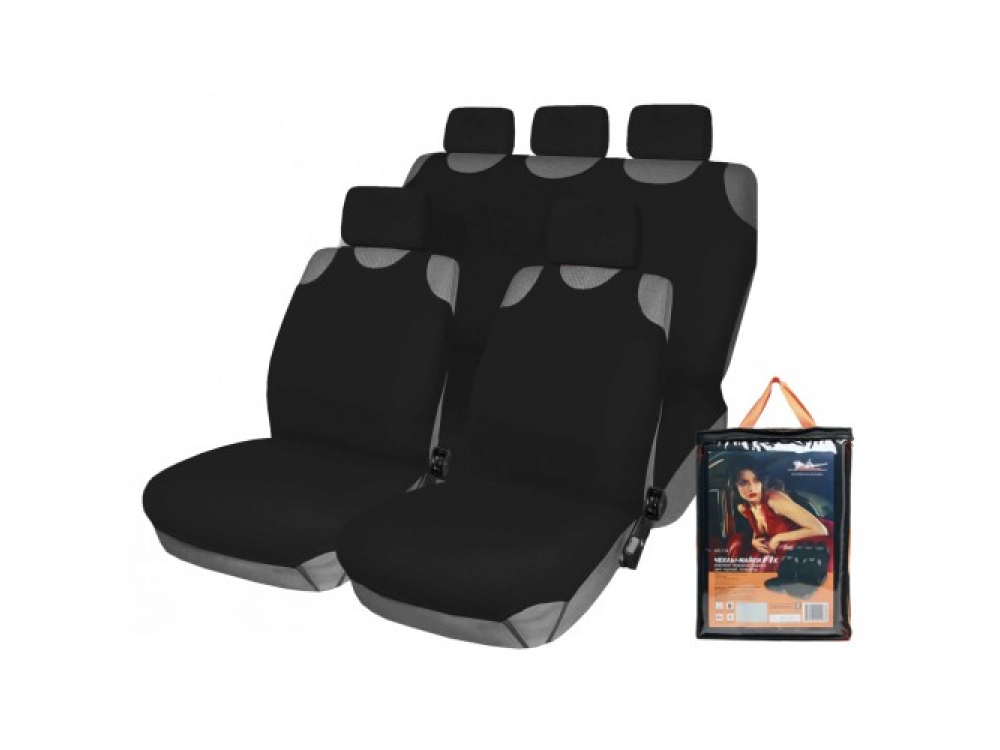 Чехлы-майки серии F-1K – это полный комплект чехлов, предназначенный для переднего и заднего ряда автомобильных сидений. Изделия изготовлены в универсальном черном цвете и имеют доступную систему крепления, которая позволит установить чехлы в машину за несколько минут. Чехлы защитят обшивку сидений и помогут надолго сохранить первоначальный вид автомобильного салона.