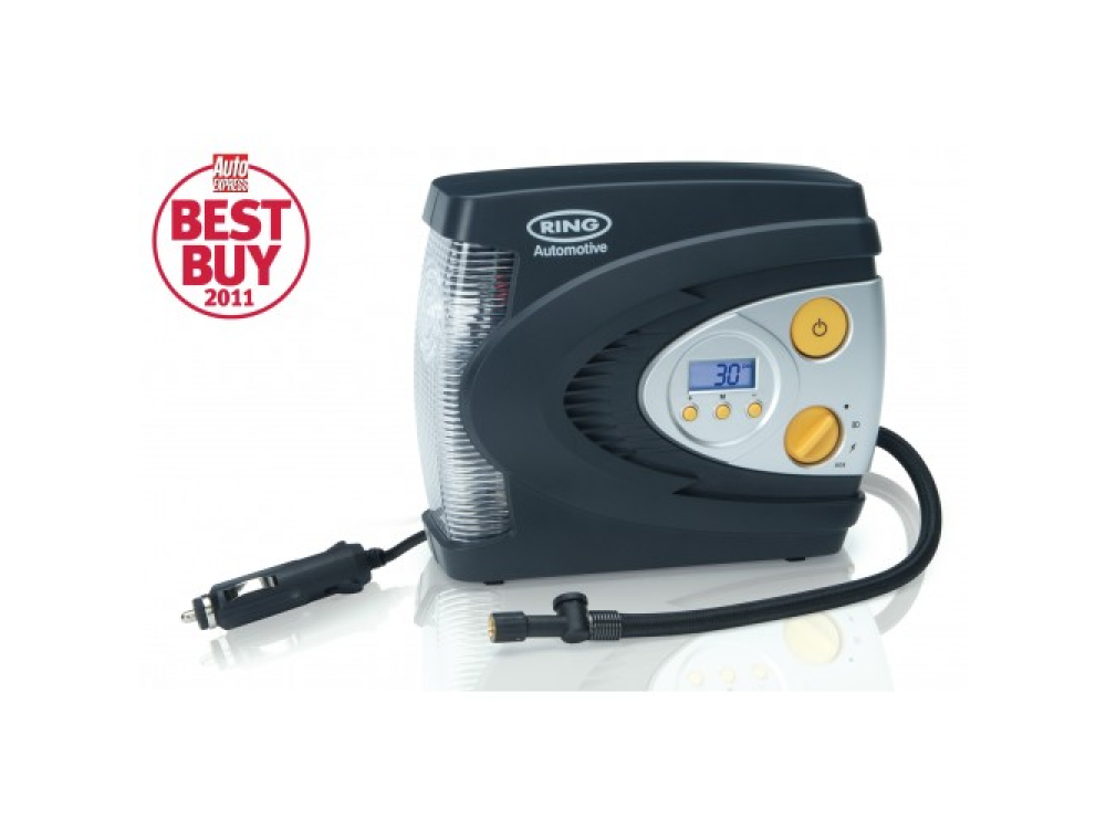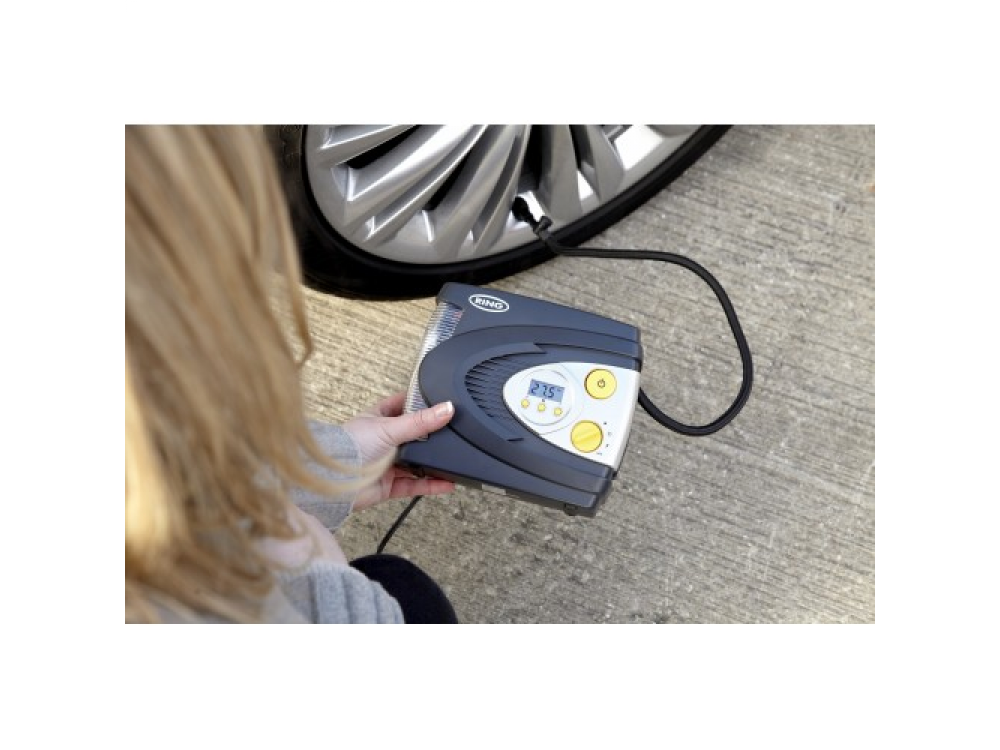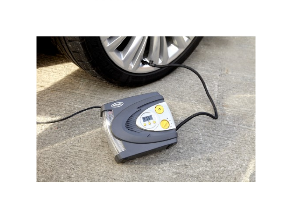 Цифровой надувной шинный компрессор Ring RAC630 12 В. Имеет светодиодный фонарь для подсветки, Красный светодиод для SOS и белый свет для ночного освещения, с режимом работы красного излучения необходим, если вам нужно накачать шину на обочине дороги в темноте, вы можете сделать это безопасно. С функцией автоматического отключения после достижения заданного давления. RAC630 накачивает 13-дюймовую шину от 0 фунтов на квадратный дюйм до 35 фунтов на квадратный дюйм менее чем за 3 минуты, экономя ваше время. В комплекте с трехсекционным адаптером, подходящим для накачивания спортивных мячей и небольших надувных лодок, и удобным футляром для хранения, позволяющим безопасно хранить компрессор в вашем автомобиле когда не используется.