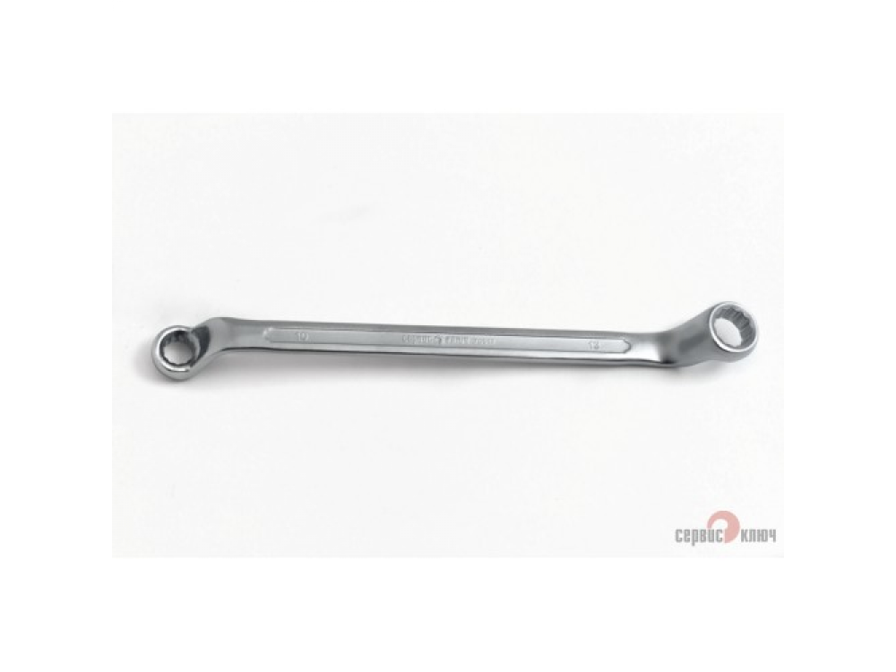 Двусторонний накидной ключ со смещением. Имеет на обоих концах 12-гранные накидные профили. Накидной профиль со смещением предоставляет более широкие возможности при работе в ограниченном пространстве. Изготовлен из высококачественной хромованадиевой (Crv) стали методом холодного штампа, тверность 40-45 HRC.