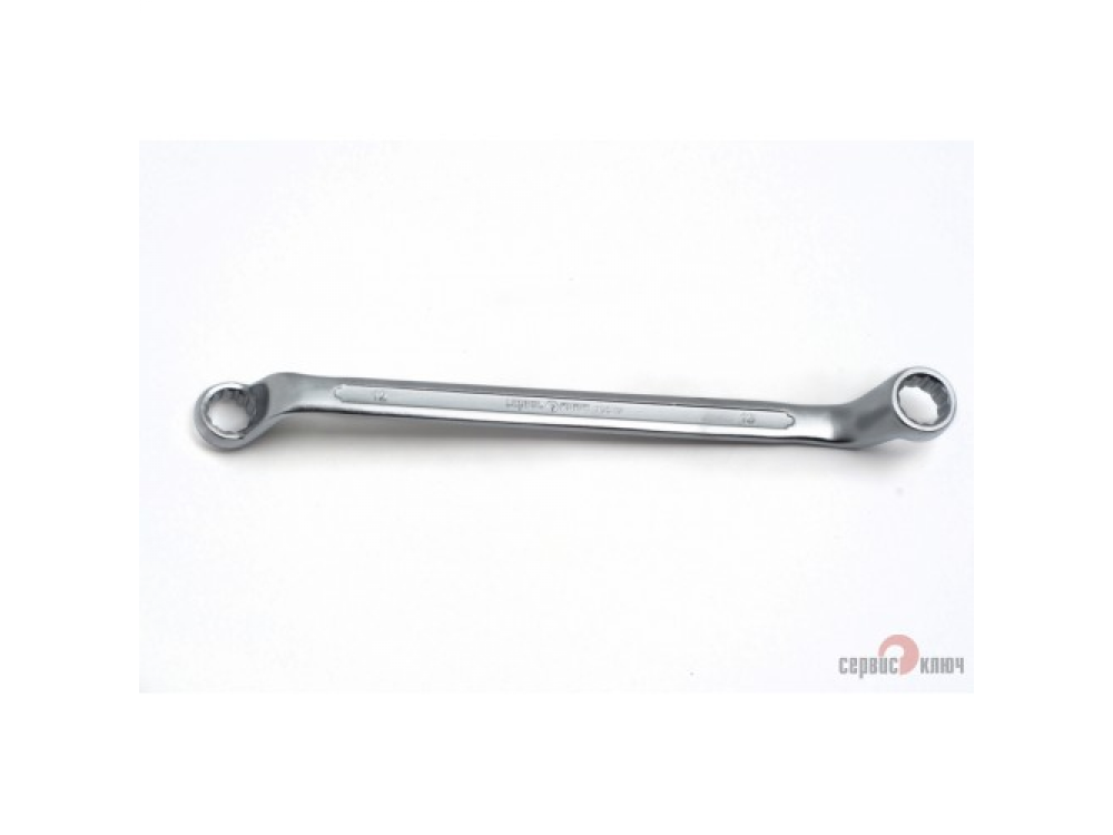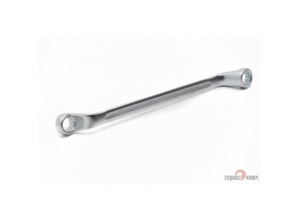 Двусторонний накидной ключ со смещением. Имеет на обоих концах 12-гранные накидные профили. Накидной профиль со смещением предоставляет более широкие возможности при работе в ограниченном пространстве. Изготовлен из высококачественной хромованадиевой (Crv) стали методом холодного штампа, тверность 40-45 HRC.