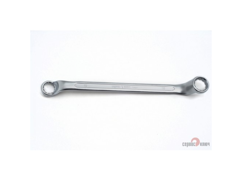 Двусторонний накидной ключ со смещением. Имеет на обоих концах 12-гранные накидные профили. Накидной профиль со смещением предоставляет более широкие возможности при работе в ограниченном пространстве. Изготовлен из высококачественной хромованадиевой (Crv) стали методом холодного штампа, тверность 40-45 HRC.