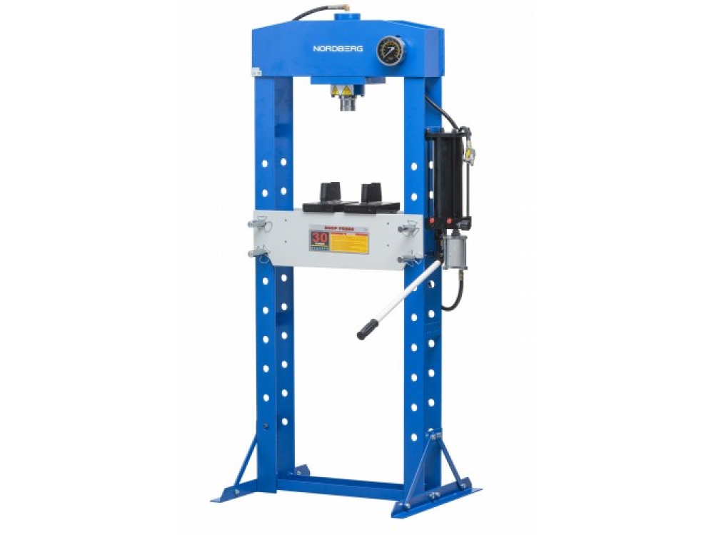 Напольный гидравлический пресс NORDBERG N3630A Описание: Надежная сварная конструкция рамы Горизонтальное смещение гидравлического цилиндра Регулируемый стол Две пластины-трапеции Гидравлический цилиндр 30 тонн. Гидравлический насос с ручным и пневматическим приводом. Автоматический возврат поршня. Предохранительный клапан для защиты от перегрузок. Глицеринозаполненый манометр 90 мм для контроля силы нагрузки. Поставляется в деревянном боксе.